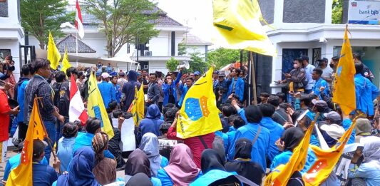 mhnews.id.- Aksi penolakan kenaikan harga bahan bakar minyak (BBM) yang dilakukan sejumlah mahasiswa di depan kantor DPRD Indramayu memanas dan berujung rusaknya pintu gerbang yang terbuat dari besi itu.