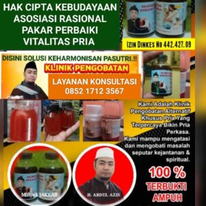 PAKAR PENGOBATAN VITALITAS H. ABDUL AZIS, SATU-SATUNYA YANG ADA DI INDRAMAYU DAN PENANGANAN BISA CUKUP 1X DATANG HASILNYA PERMANEN DIJAMIN 100% AMAN TIDAK ADA EFEK SAMPING. HAK PATEN TERDAFTAR IZIN DINKES 442.427.09.