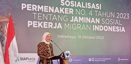 Hal itu dikatakan Menteri Ketenagakerjaan RI Ida Fauziyah pada kegiatan sosialisasi Permenaker No 4 tahun 2023 tentang jaminan sosial pekerja migran Indonesia di Indramayu, Selasa (10/10/2023).