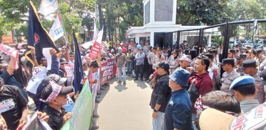MHNEWS.id.- Ratusan wartawan dari berbagai organisasi yang tergabung dalam Forum Komunikasi Jurnalis Indramayu (FKJI) berunjuk rasa di gedung DPRD Kabupaten Indramayu, Kamis (30/5/2024).