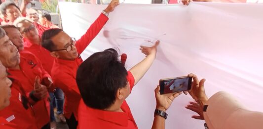 “Hari ini bertepatan dengan hari ulang tahun PDIP yang ke-52 , kita bersama-sama membubuhkan tanda tangan dan cap jempol darah untuk tegak lurus Megawati,” kata Syamsul.
