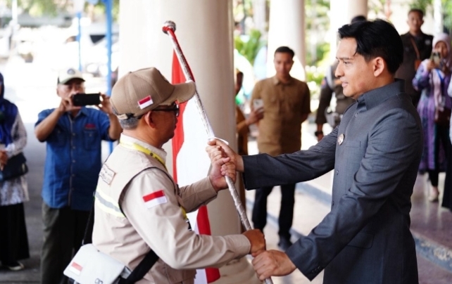 MHNEWS.ID.- Bupati Lucky Hakim melepas sebanyak 441 jemaah calon haji kelompok terbang (kloter) 10 (KJT 10) Kabupaten Indramayu Tahun 1447 H/2026 M dari pendopo, Selasa (28/04/26).